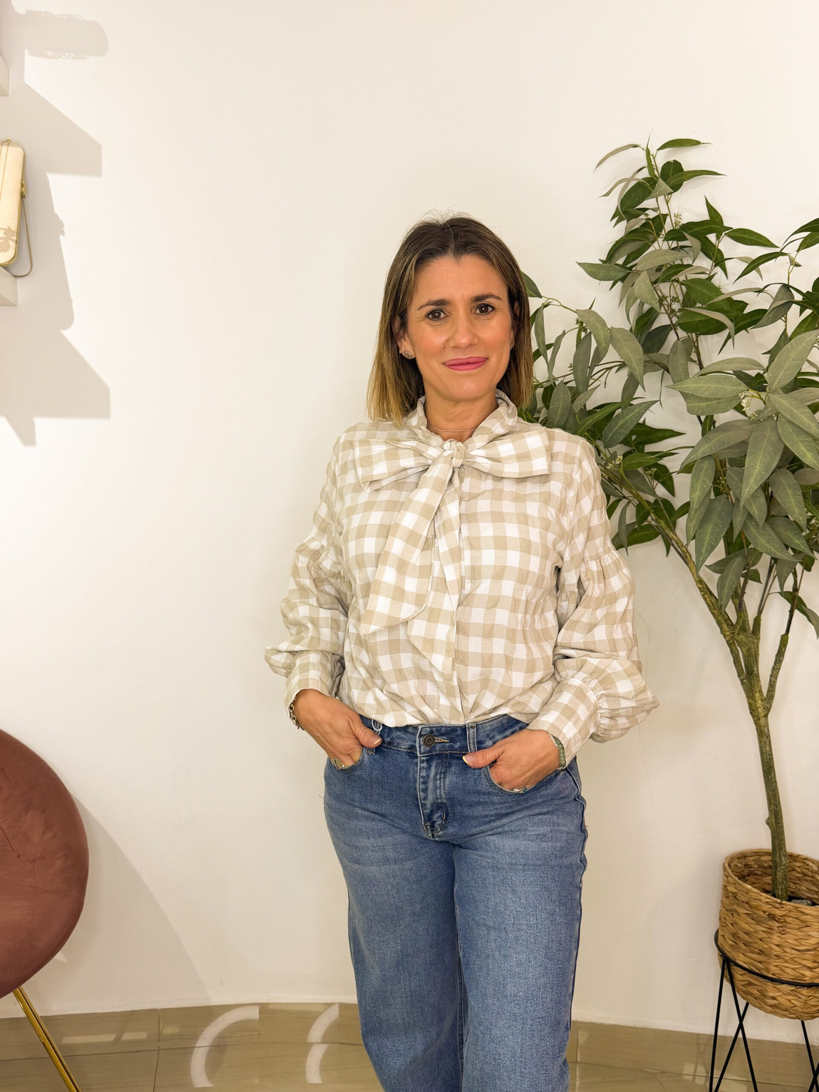 Camisa Vichy Grande Beige