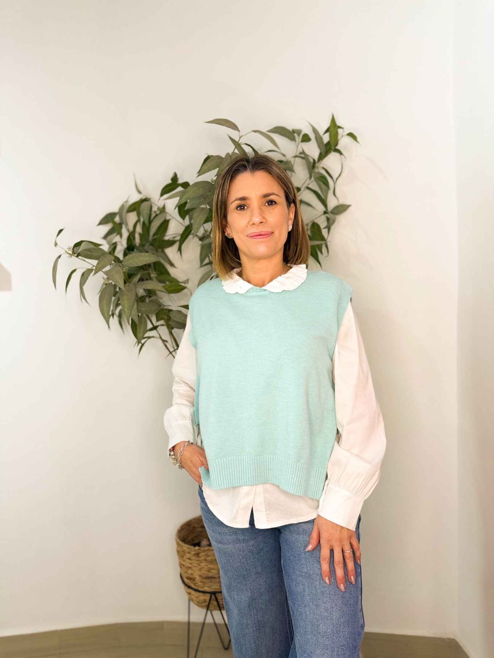 Chaleco Punto Verde Aguamarina